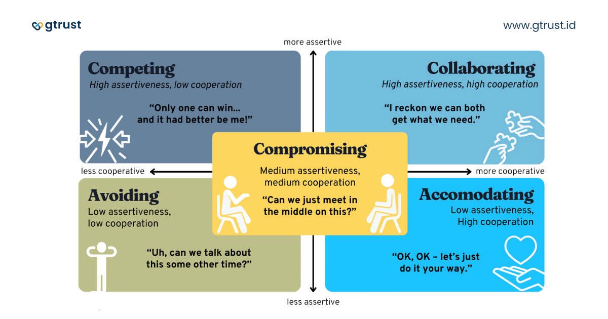 Tidak semua konflik perlu diselesaikan dengan cara yang sama. Thomas-Kilmann Conflict Model membantu leader dan HR memahami kapan harus tegas, kapan harus kolaboratif, dan kapan sebaiknya menahan diri.