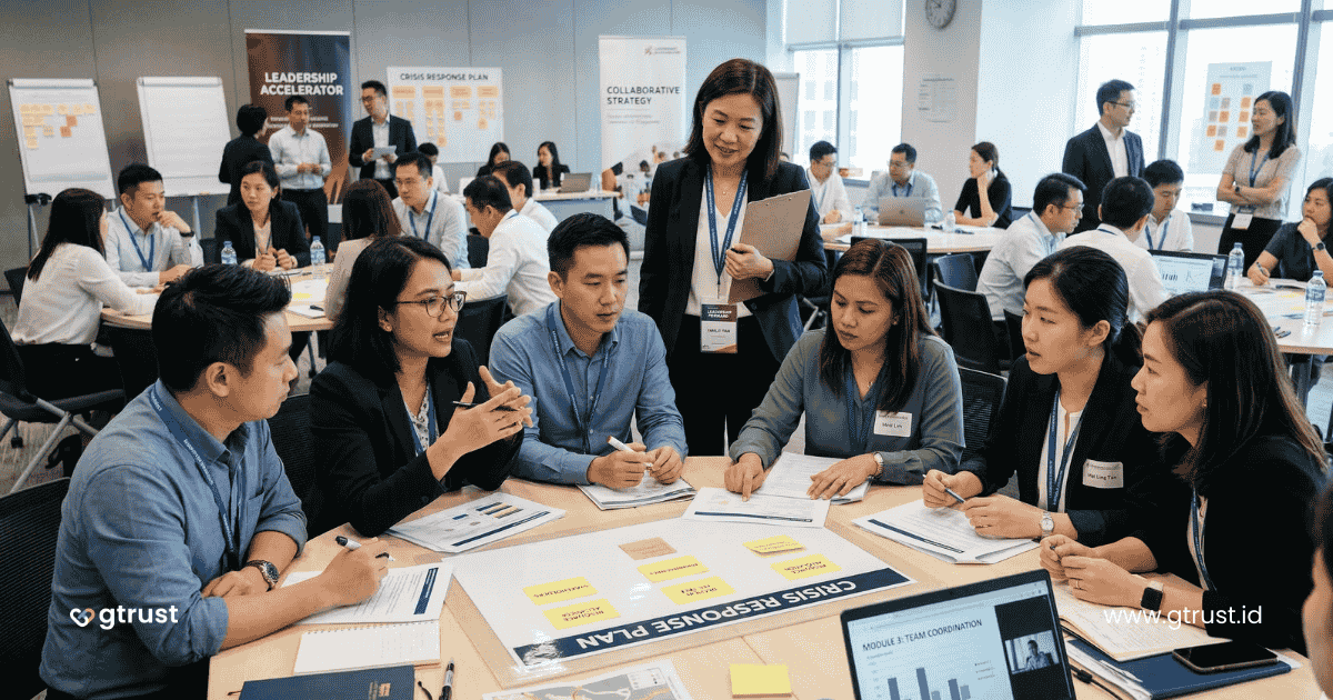 Di Gtrust Consultancy, leadership training program dirancang dengan pendekatan yang bersifat fasilitatif dan kontekstual. Artinya, proses belajar tidak hanya berupa penyampaian materi, tetapi juga membantu peserta merefleksikan pengalaman kepemimpinan mereka sendiri dan memahami bagaimana keputusan serta perilaku mereka memengaruhi tim.